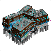 4 | 辅助定位 | 1、蝶形体系放样:对不同施工段建立不同坐标体系,通过精准定位,辅助现场人员放线开挖,指导现场施工 ; 2、对玻璃采光顶建模,并精准定位预埋件的位置,导出材料用量;3、对金属屋面建立三维 模型,核对、检查图纸中的尺寸及标高是否准确,辅助现场人员测量放线 | 辅助定位,预计节约 工期9天 |